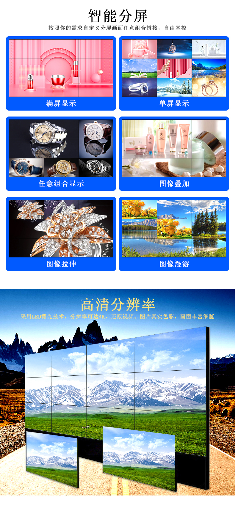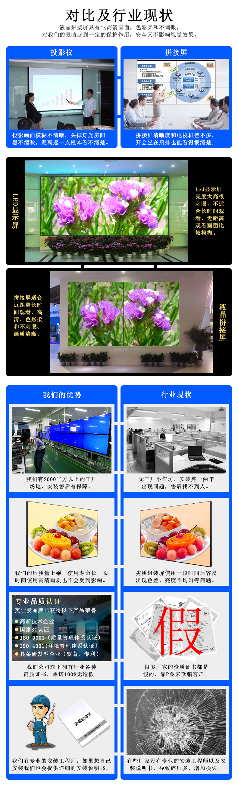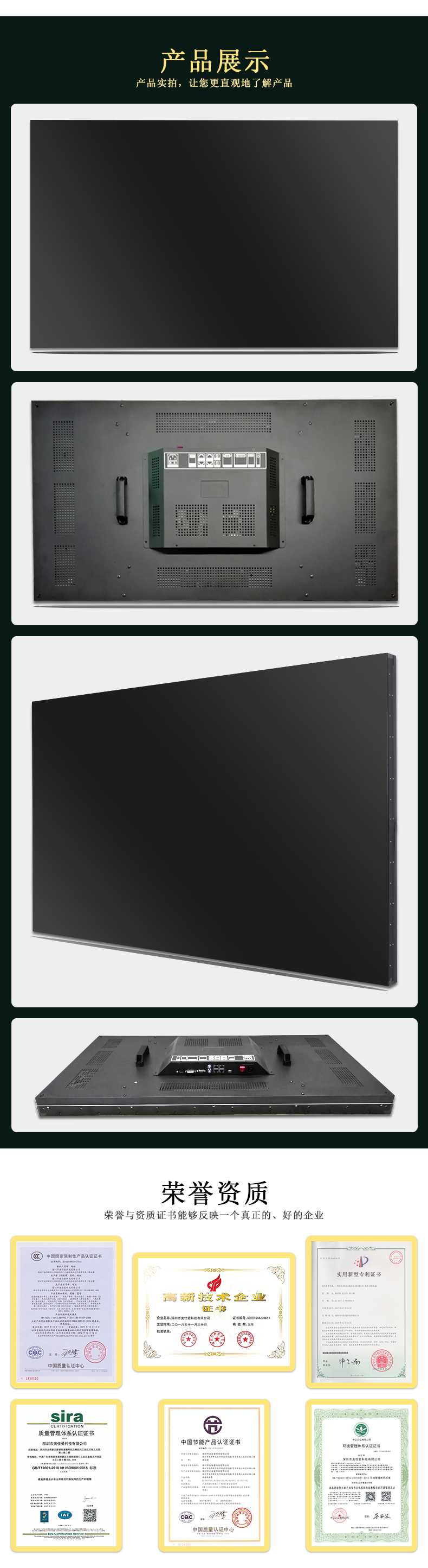 【美佳愛-4k液晶拼接屏生產(chǎn)廠家電話400-997-9971】原裝LG49寸液晶拼接屏3.5mm產(chǎn)品通過ISO9001_3C_節(jié)能認(rèn)證等30多項(xiàng)認(rèn)證,主營(yíng)LG/京東方/三星大屏幕電視墻,其尺寸有32寸40寸43寸46寸49寸55寸65寸75寸液晶拼接單元,也有曲面,弧形,柔性,無縫LED顯示屏,顯示器,超窄邊高清監(jiān)視器,提供企業(yè)展廳展示,KTV,酒吧,會(huì)議室,視頻監(jiān)控系統(tǒng)解決方案設(shè)計(jì)-報(bào)價(jià)-安裝施工-售后超窄邊維修等服務(wù)